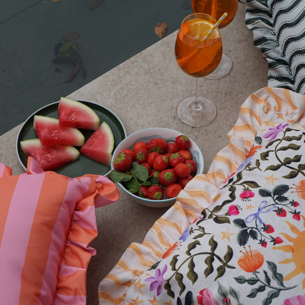 "At Furn, we have chosen to mix style with a durable finish." Suzi explains. "We wanted to print our outdoor cushions for that individual feel. Our solid colours are bright and impactful, something you don't always get with heavy waterproof versions".