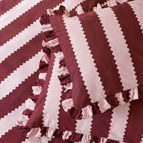 Connie Striped Ruffle Duvet Cover Set Clay Pink
