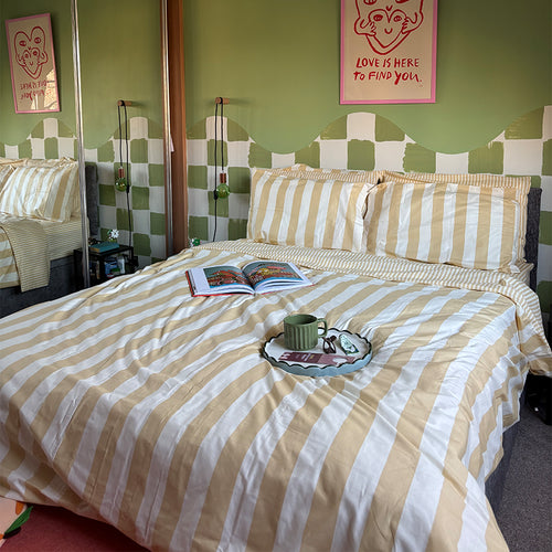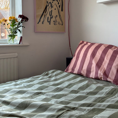 A burst of pure goodness. Raspberry Smoothie’s energising, vibrant stripes bring a joyful burst of colour to your bedroom. The colour equivalent of a morning reset and the perfect way to ensure you wake up on the right side of the bed. But… maybe just five more minutes?