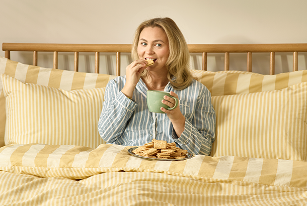Tuck into something sweet. A nostalgic favourite and wildly underrated classic, Custard Cream serves just the right amount of sweetness. Familiar, comforting, and always there when you need a little pick-me-up. Think slow mornings, zero plans, and breakfast in bed. Cuppa anyone?