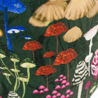 - Featuring hand-painted printed vivid mushrooms and fungi over a bold, contrasting background.