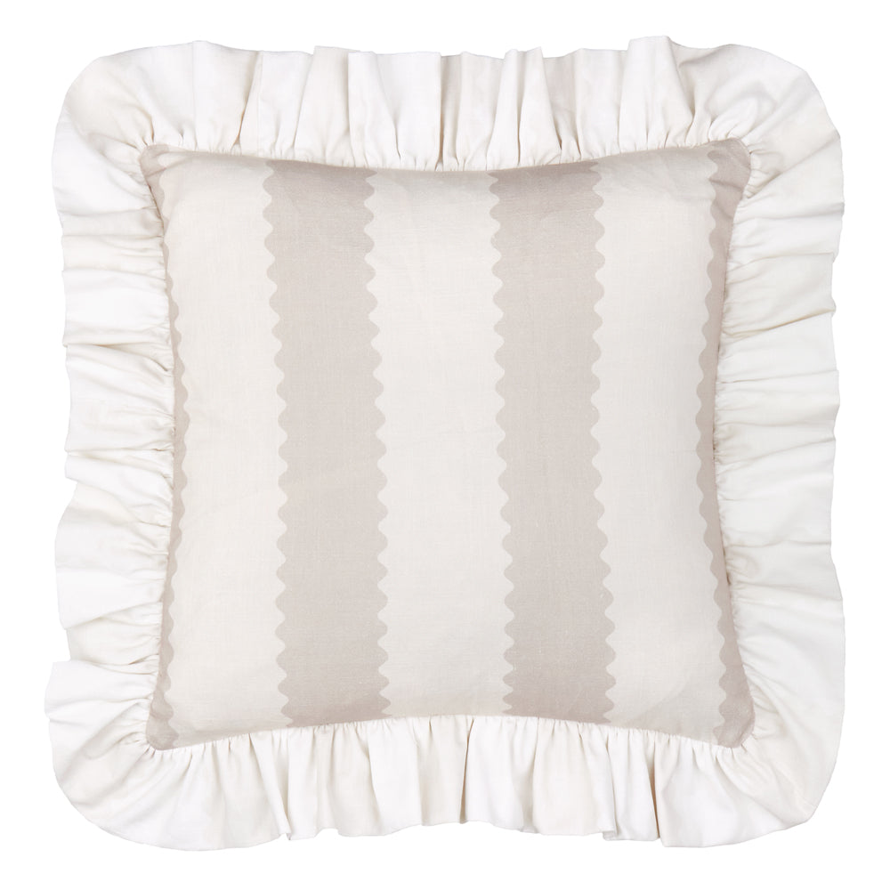 Birdie Stripe Ruffle Cushion Oat/Milk