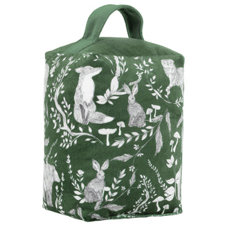 - Featuring hand-drawn depictions of woodland animals, amongst the florals and foliage, set on an earth-toned background.
