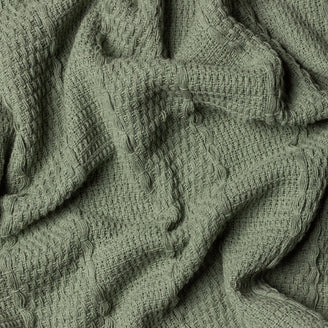 - Features relaxed linear and textural weaves which are separated by tightly bunched contrast yarn details.