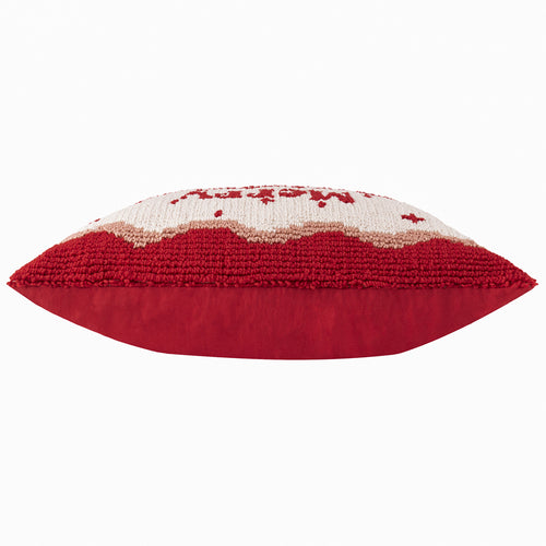 - Featuring a tufted face and reverse with a cheerful "Merry Christmas" slogan and decorative border.