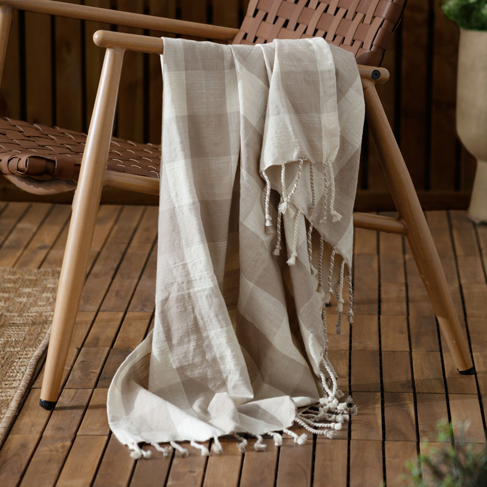 Chesil Check Tasselled 100% Cotton Throw Natural