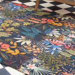 - Featuring a collage of tropical flowers set on a contrasting background and printed on soft woven cotton fabric.