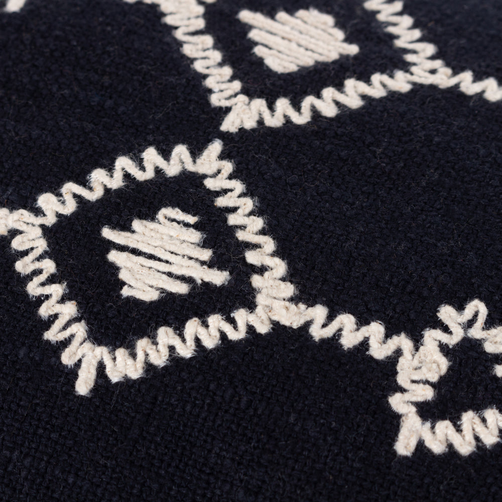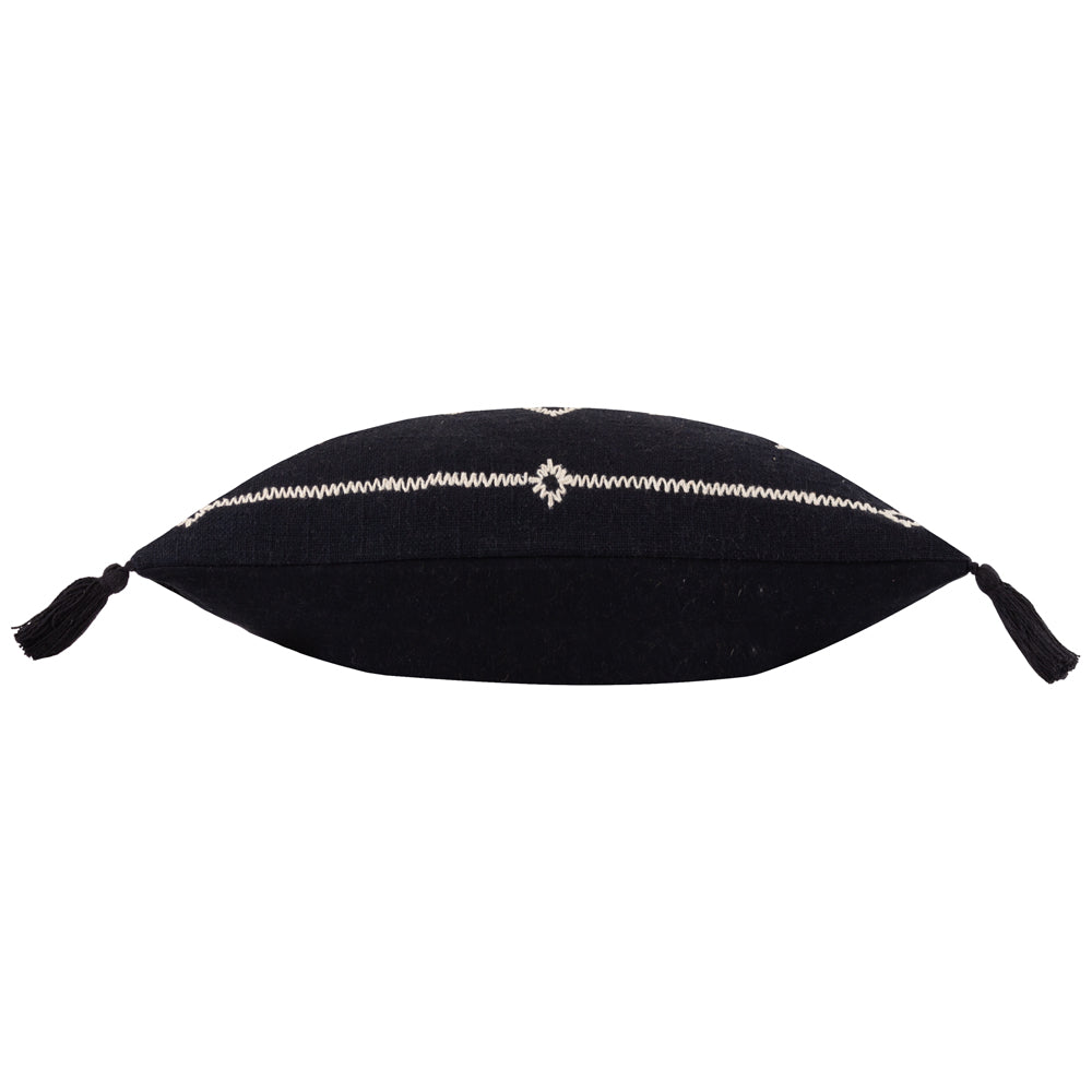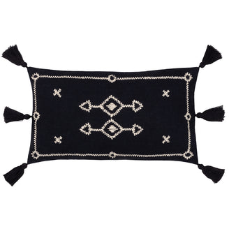 Inspired by global styling, the Folis accent cushion features delicate geometric embroidery details, set on a cotton slub base. Complete with a plain cotton reverse and all-over side tassel edging; this cushion is available in a range of soft organic colours and will layer well within any interior.