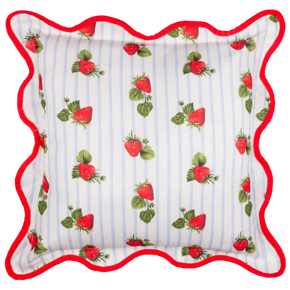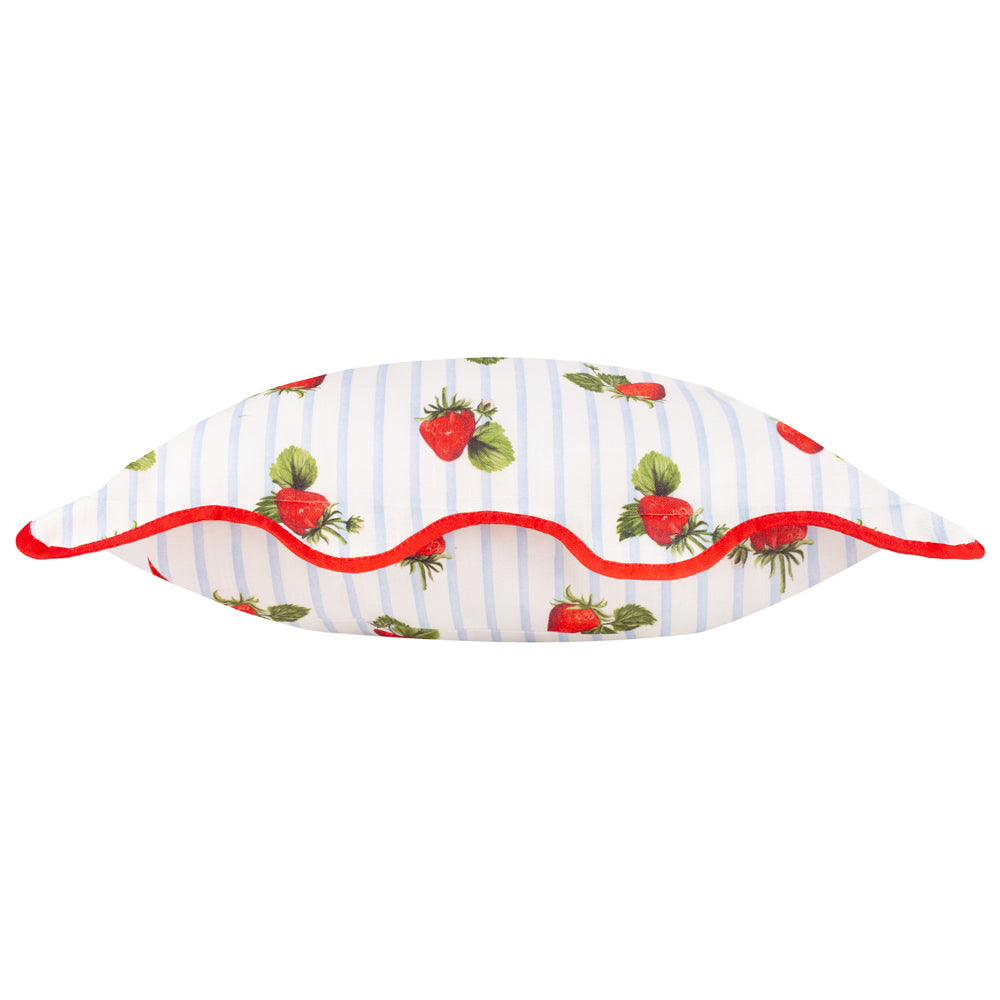 Fruits Strawberries Striped Outdoor Cushion Blue