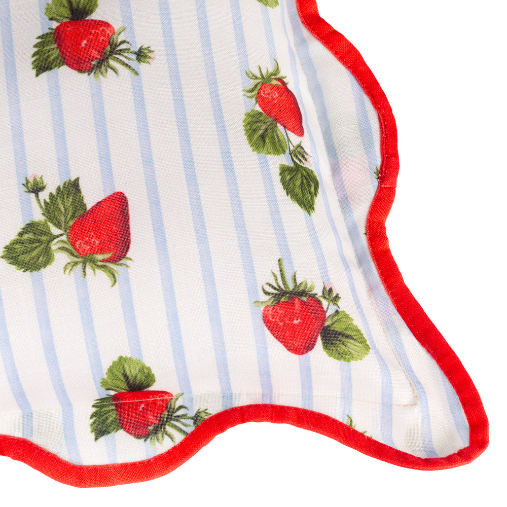 - Features a playful, hand-painted Strawberry design on a timeless stripe background.