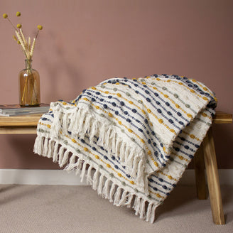 - Featuring a chunky woven tuft stripe and dotted design.