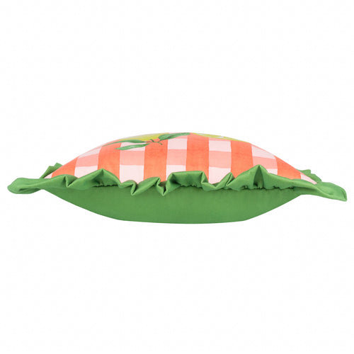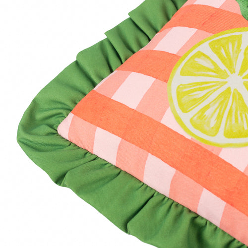 Gingham Citron Printed Ruffle Cushion Multicolour