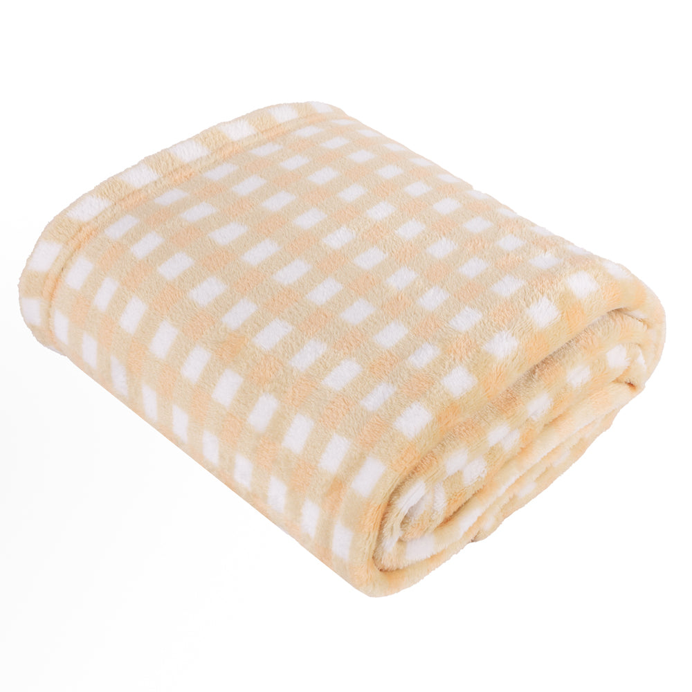 Gingham Printed Fleece Throw Yellow