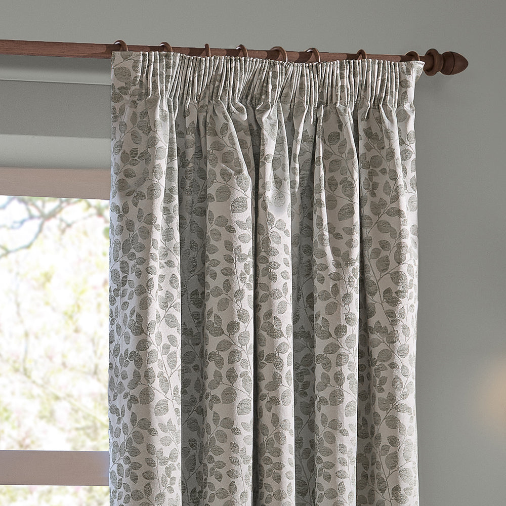 Grace Leaf Jacquard Fully Lined Pencil Pleat Curtains Mist Grey