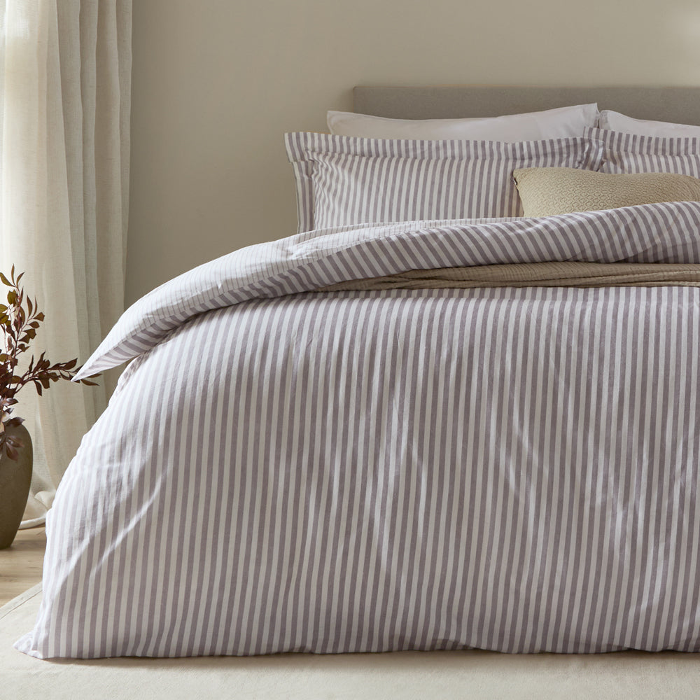 Hebden Mélange Stripe 100% Cotton Duvet Cover Set Mauve