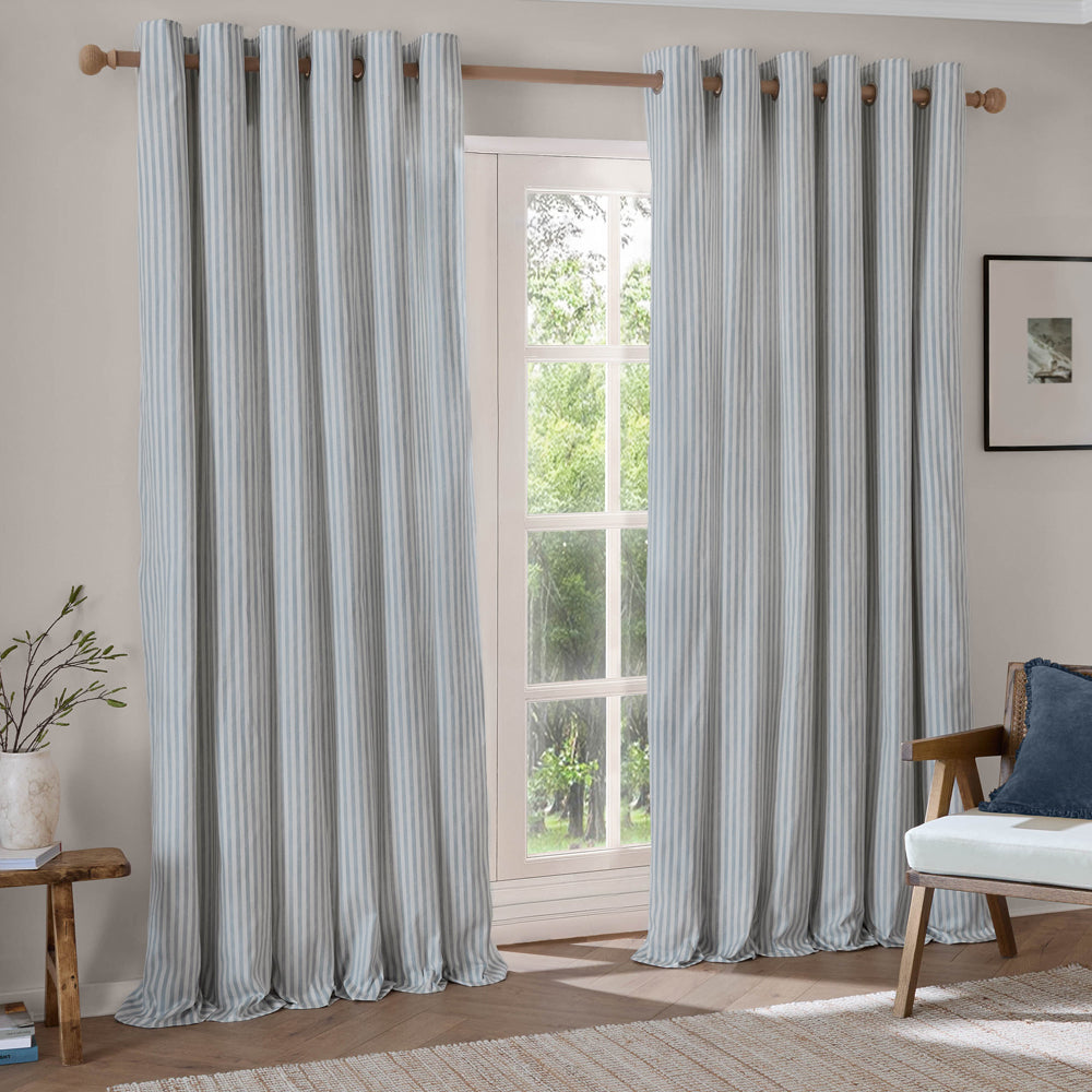 Hebden Striped 100% Cotton Lined Eyelet Curtains Mineral Blue