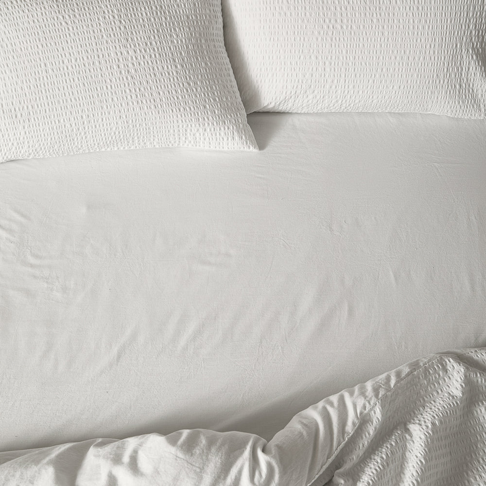 - A washed cotton fitted sheet perfect for layering.