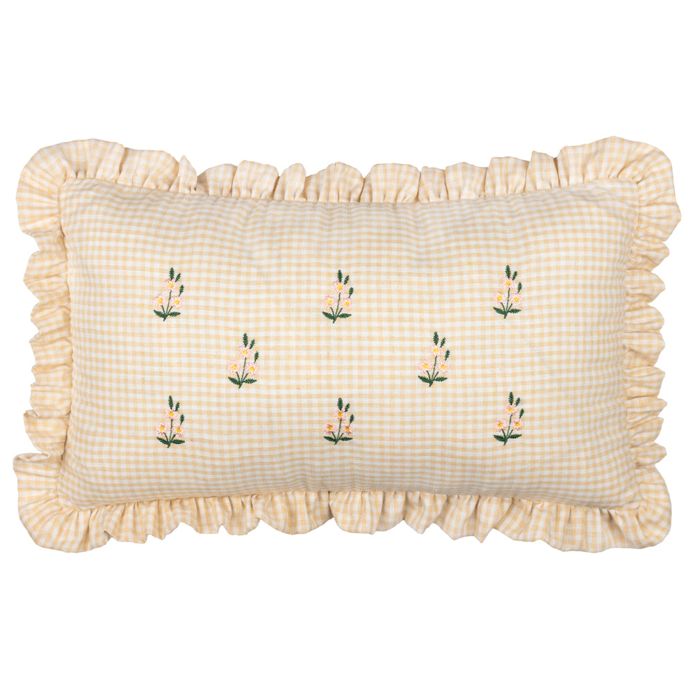 Les Petite Fleurs Gingham Ruffle Cushion Natural