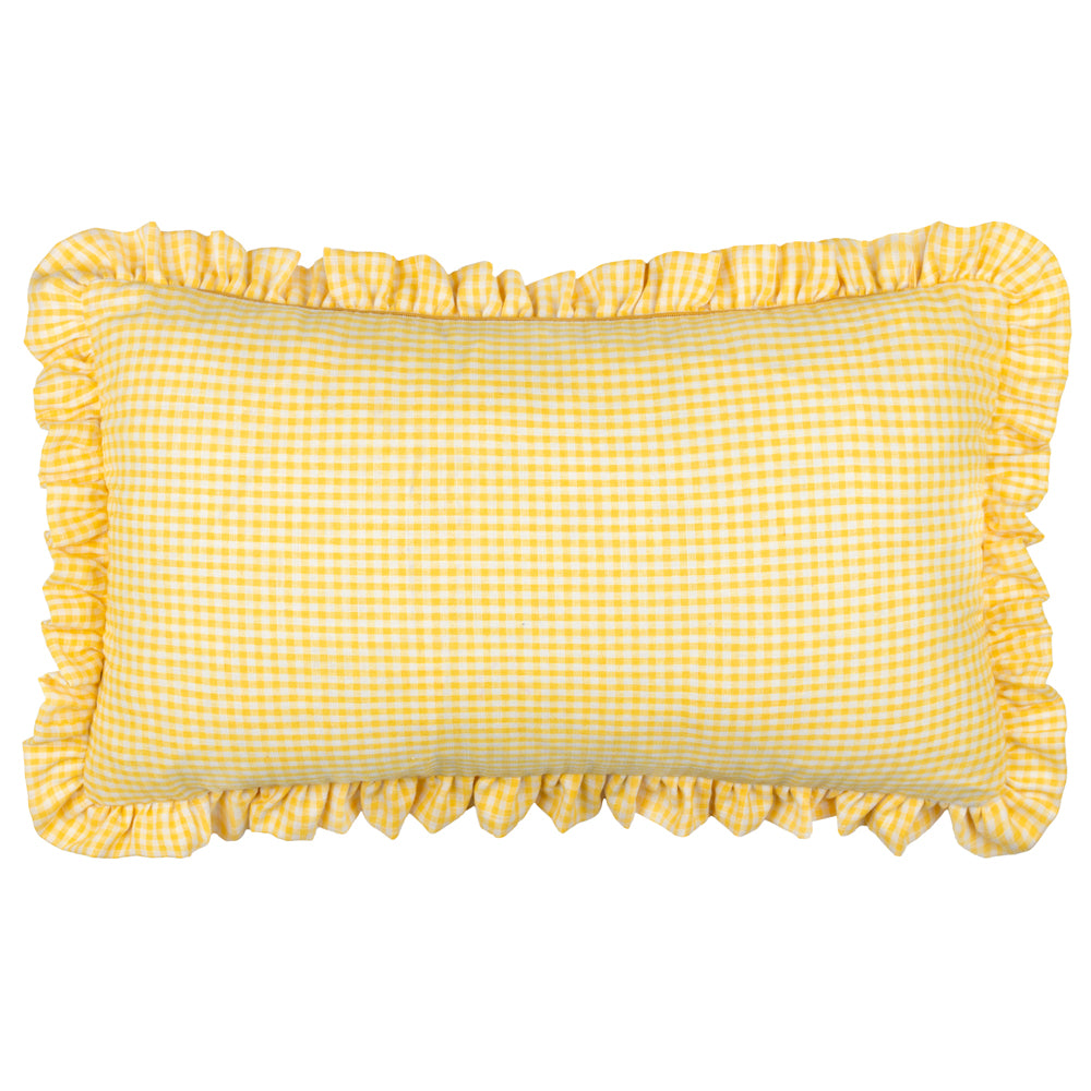 Les Petite Fleurs Gingham Ruffle Cushion Yellow