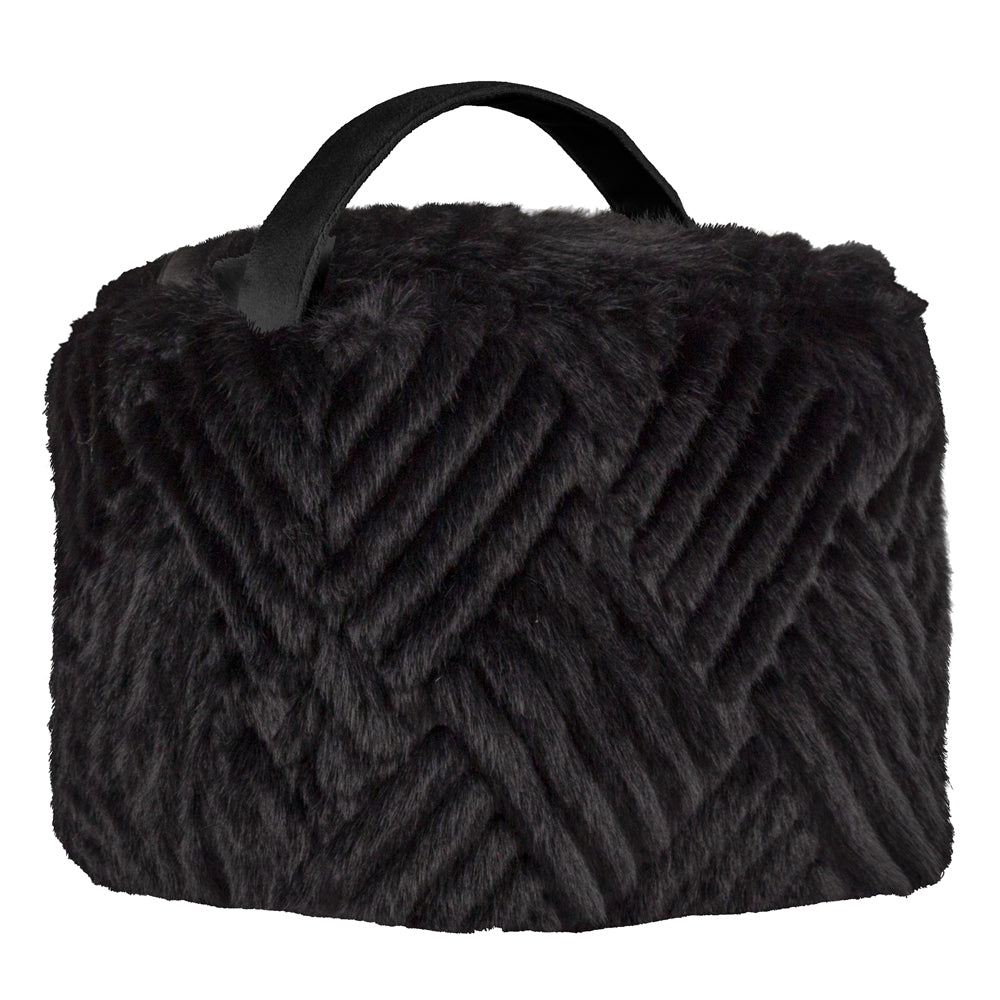 - Complete with a useful storage handle and a plain velvet reverse.