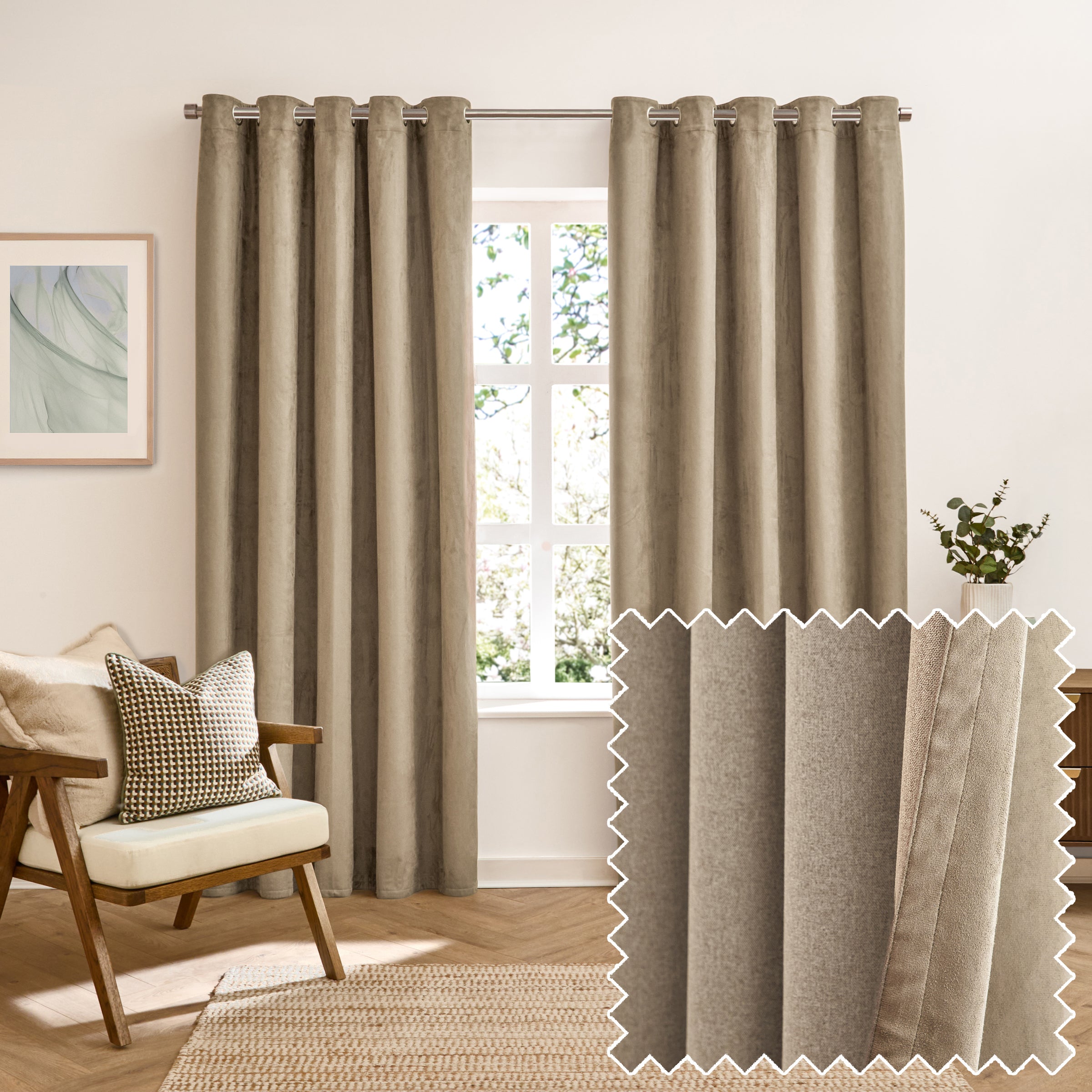 Verso Reversible Suede-look Blackout Eyelet Curtains Mocha