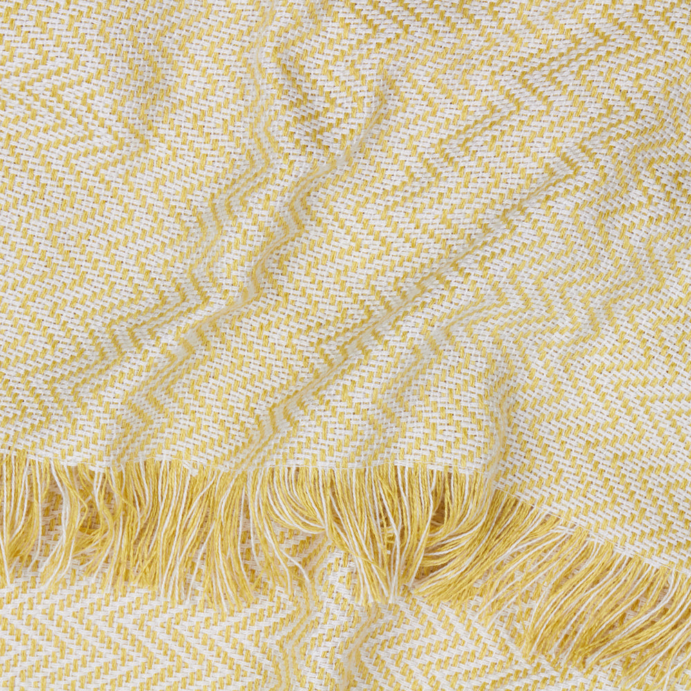 - Soft woven herringbone design with a tasselled trim for effortless style.